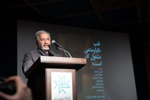 او در ادامه متنی درباره آقای عباس کیارستمی و عنوان این شب؛ «کیارستمی مشغول کار است»؛ خواند.