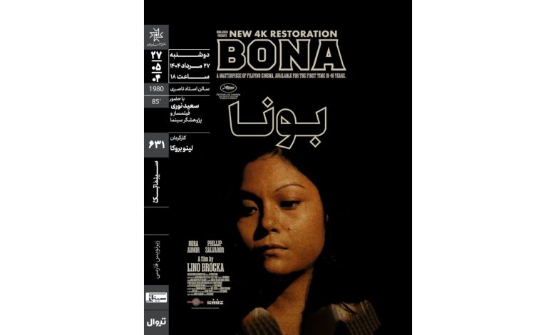 فیلم «بونا» ساخته لینو بروکا (۱۹۸۰) ساعت ۱۸ دوشنبه ۲۷ مرداد ۱۴۰۴ در سالن استاد ناصری، برنامه ششصد و سی و یکم سینماتک خانه هنرمندان ایران به نمایش درمیآید.