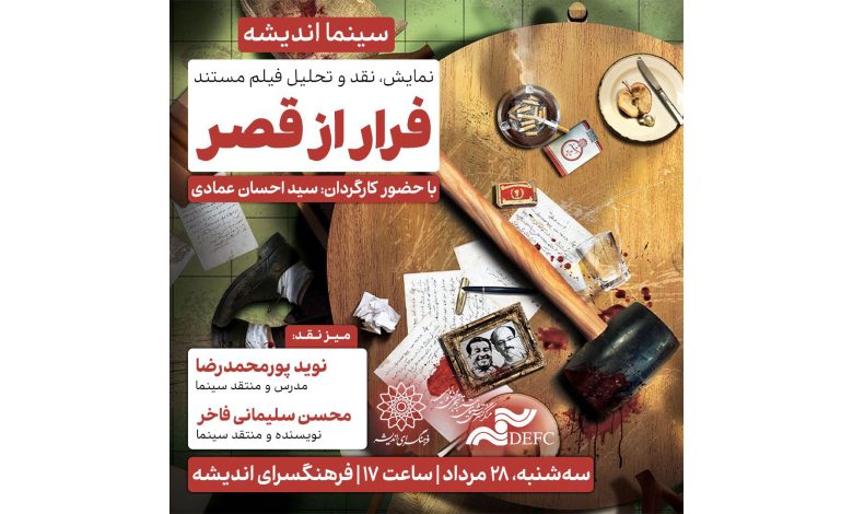فیلم مستند «فرار از قصر» بهکارگردانی سید احسان عمادی در فرهنگسرای اندیشه اکران و نقد بررسی می شود.