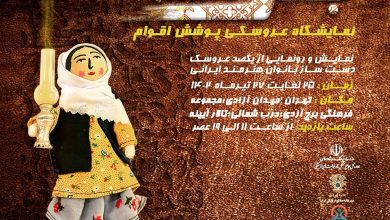 نمایشگاه عروسکی پوشش اقوام “جومه” روز یکشنبه ۲۵ تیر درتالار آینه برج آزادی افتتاح می شود. به گزارش روزنه هنر،…