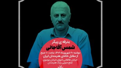 مراسم بدرقه پیکر شمس آقاجانی، شاعر و منتقد ادبی، دوشنبه ۲۰ شهریورماه ساعت ۱۰ صبح مقابل خانه هنرمندان ایران برگزار…