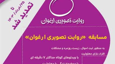 مهلت ارسال آثار به مسابقه «روایت تصویری ارغوان» تا ۲۵ خرداد ماه سال جاری تمدید شد. به گزارش روزنه هنر…
